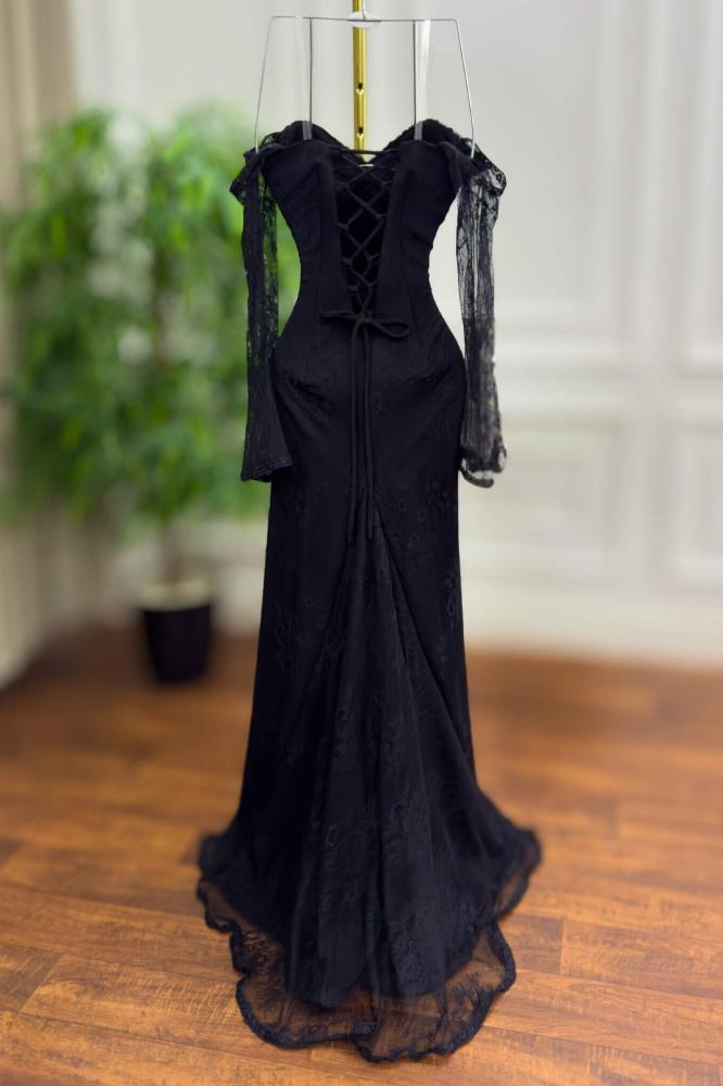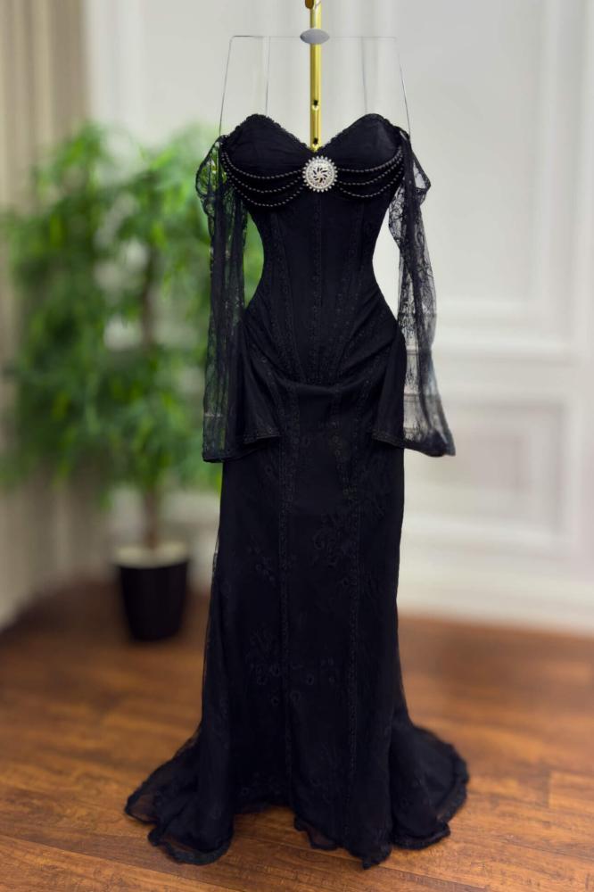 - فستان سهرة ناعم دانتيل بتصميم كورسيه يحدد الخصر بشكل أنثوي أنيق ليمنحك قواماً ممشوقاً ومظهراً راقياً.