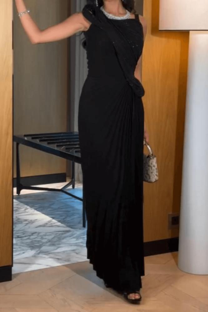 تألقي بجاذبية لا تقاوم مع فستان سهرة اسود طويل المصنوع من خامة باربي الأصلي الفاخرة. هذا الفستان مصمم خصيصًا ليمنحك إطلالة ساحرة في كل مناسبة، بفضل قصته التي تبرز جمال قوامك بشكل أنيق.