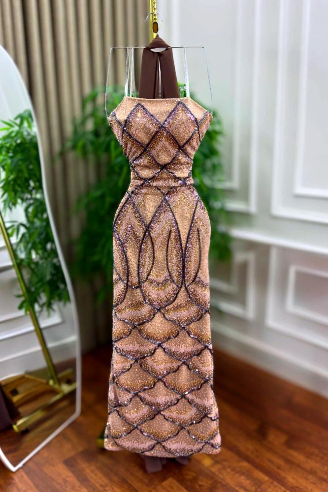 فستان سهرة بتصميم أنثوي فاخر، مصنوع من قماش عالي الجودة مع لمسة حرز تعطيه لمعان فريد. فستان سهرة طويل أنيق وشق أمامي جريء يبرز الخصر ويمنحك إطلالة راقية تلفت الأنظار.