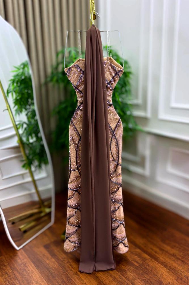 • فستان كلفة سهرة بتصميم يجمع بين الكلاسيكية والفخامة بأسلوب عصري يمنحك حضور مميز في أي مناسبة سهرة أو احتفال.