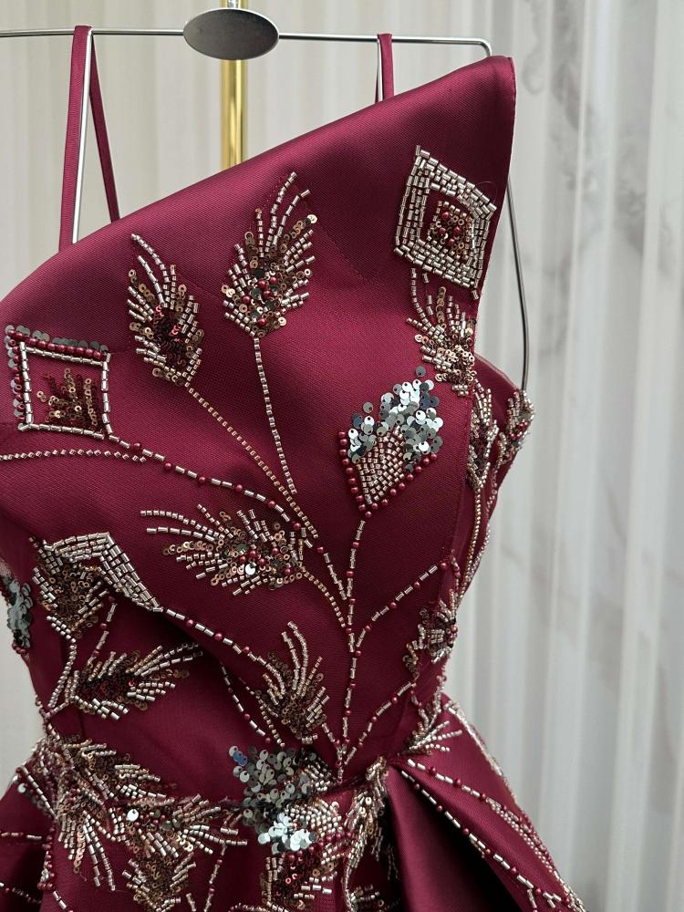 • الوان الفساتين: برغندي.