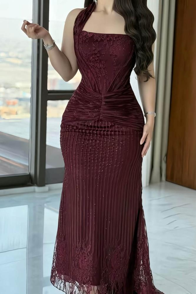فستان ناعم دانتيل فخم يبرز أنوثتك بجاذبية راقية، تصميم ضيق مع تفاصيل كشكشة عند الخصر تمنحك قوام مثالي، وتنورة بليسيه ناعمة مع لمسات دانتيل مطرزة تضيف لمسة فاخرة تخطف الأنظار.