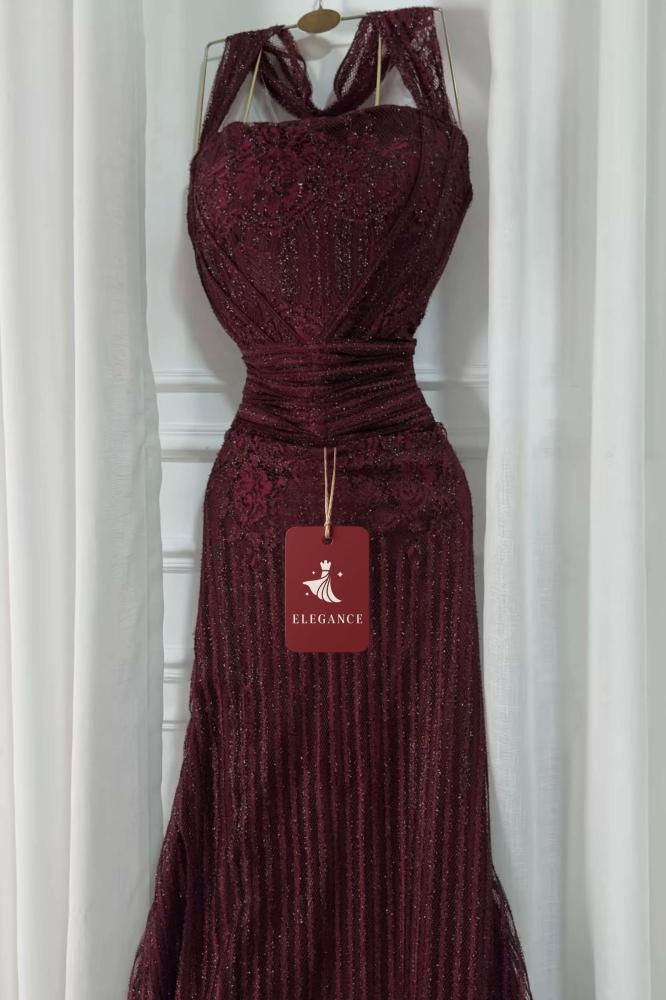 • قماش الدانتيل الفاخر يضيف لمسة راقية للفستان ويعكس جودة عالية تظهر في كل تفصيلة.