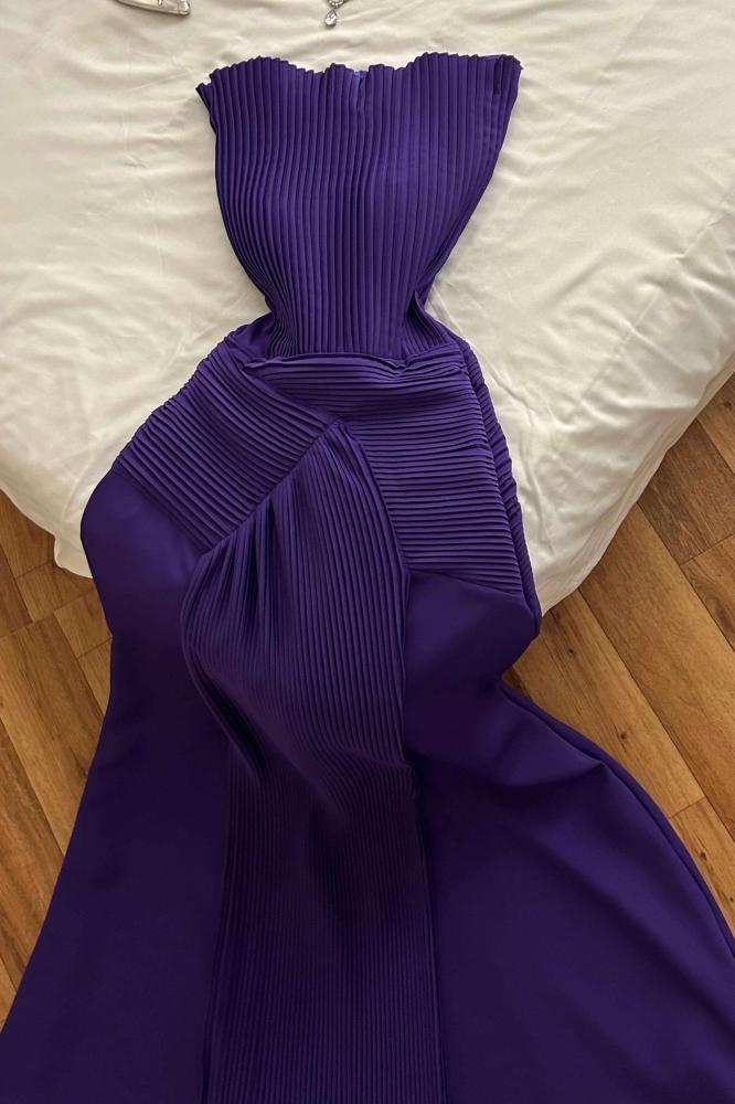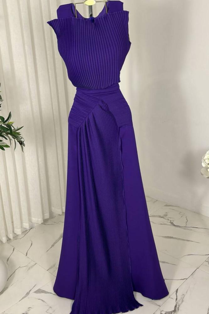 تألقي بجاذبية لا تقاوم مع فستان ناعم موف.